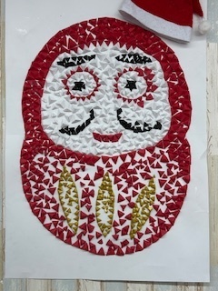 この作品はどうなっているかと言うと、大きな白い型紙の上にだるまさんの下絵を描いて、