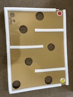今週の活動は、ボードに乗せたボールをスタートからゴールまで転がす遊びです。