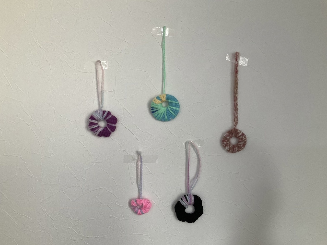 様々な色の組み合わせの毛糸を「どの色にしようかな?」と、選んだり、一つひとつ丁寧に製作し、完成すると嬉しそうに見せてくれる様子が微笑ましかったです。