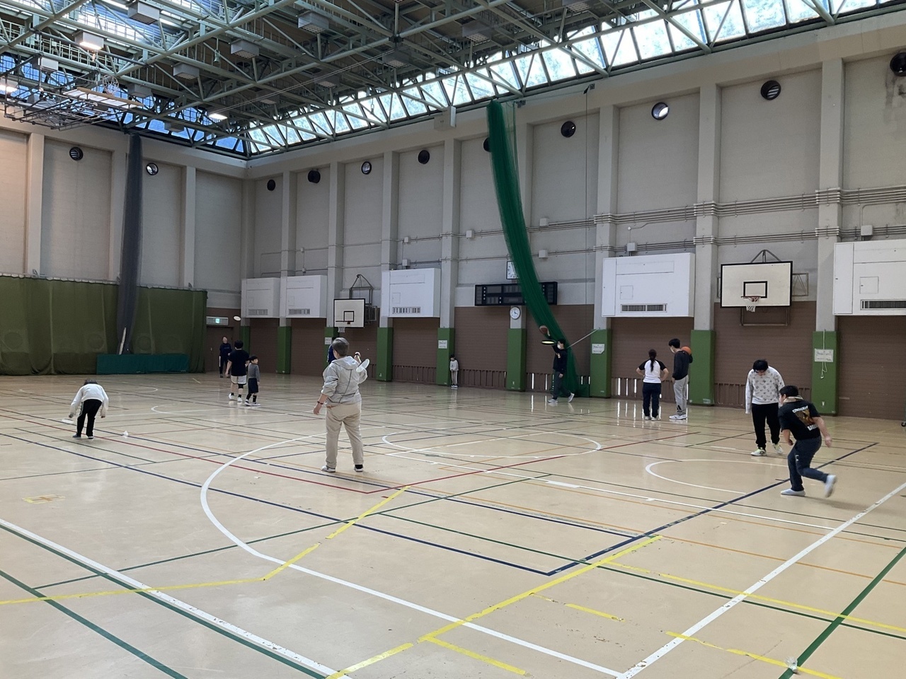 広い体育館の中で、バスケットボールやドッヂボール等で楽しみました。バスケットのゴールを目指してボールを投げたり、職員や他のお友達とドッヂボールで遊んだりそれぞれのペースで参加されていました。ボールを両手でしっかりと持ち集中した表情でゴールを狙う姿やシュート出来た時の達成感のある表情がとても印象的でした。普段とは違う環境で体を動かすことで気分転換にもなり笑顔も多く見られました。